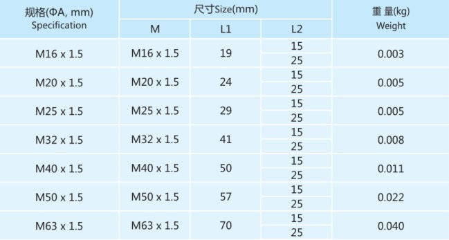 備注: 該配件應(yīng)與鎖緊螺母配套使用。